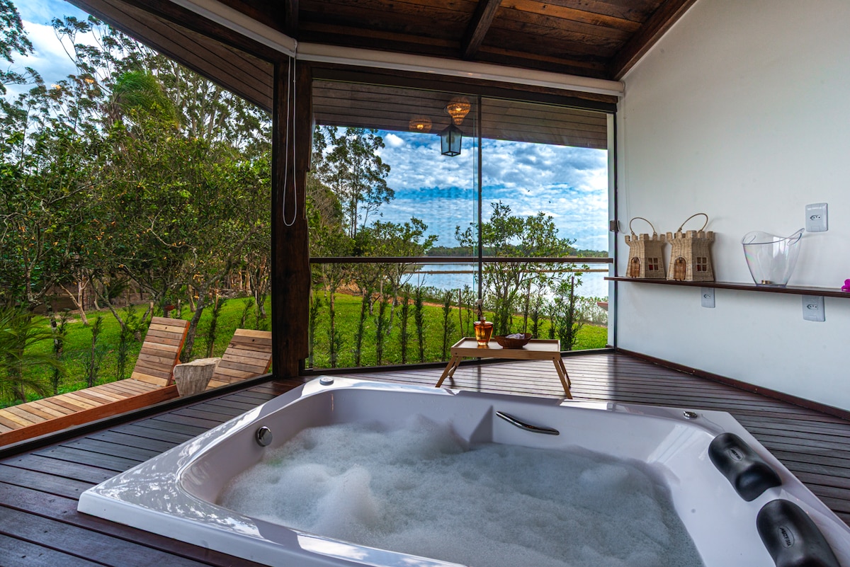 High-end cabin, ideal for couples seeking tranquility and comfort. It has a suite with a double bed and 2 single sofas (futon) in the living room. ▶️ Only 5 minutes from Balneário Arroio do Silva Beach ▶️ 15 minutes from Morro dos Conventos With a Jacuzzi, barbecue, fireplace, parking and furniture with sophisticated decor, it is perfect for short or long stays, whether for romantic moments, solo trips or leisure. ❤️ We have a romantic decoration option, see the prices ❤️