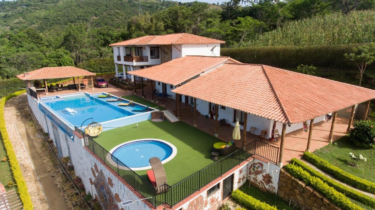 🌿Enjoy a unique stay in Castañeto, a country house 1km from the village. Small private pool,Turkish, outdoor shower, chimney flower gardens, a spectacular view. Perfect for relaxing, connecting with nature and enjoying the cool weather. Here you will find Tranquility, privacy, and spaces designed to share with family, friends, or couple. board games, pingpong 4 rooms with private bathroom. Live an authentic Barichara experience with true charm✨