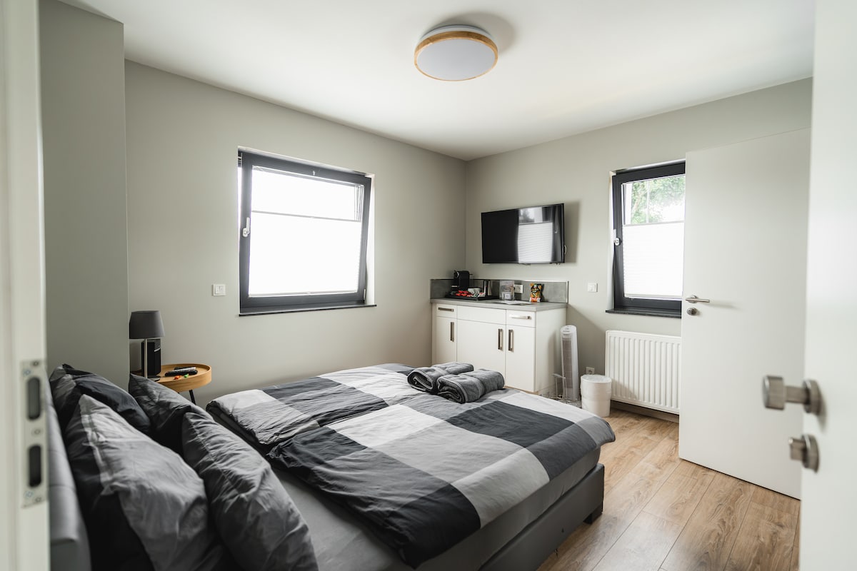 This is NOT a hotel. Room 1 is a double room with a king bed and features a private bathroom with toilet and shower. **There is also a comfortable chair that can be pulled out to make a single bed for a CHILD** (please give advance notice if you need to use this) Smart TV, WIFI, mini fridge, microwave, Nepresso machine, water kettle. The room is only 5 min to Ramstein Air Base. There are stores and restaurants within walking distance and easy access to public transportation. Self-check in.