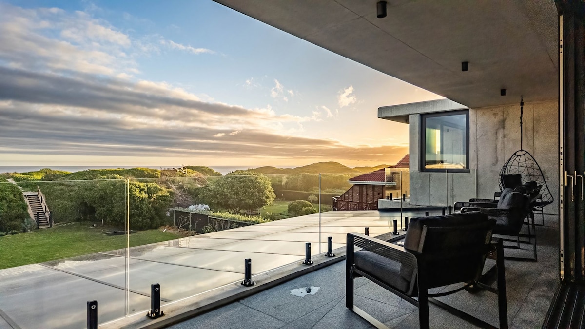 We are situated on the front row on the Blue Flag Glentana Beach with amazing views of the bay all the way to Mossel Bay. We are 10 minutes from the George Airport and in the heart of the Garden Route paradise. We are close to George golf club, Oubaai and Fancourt. Wilderness, Knysna, Plettenberg Bay and Oudsthoorn are all a day trip drive away. All 5 bedrooms are Sea Facing and all are en suite. Fully fitted chef's kitchen, indoor and outdoor entertainment areas, three BBQ areas. Very private.