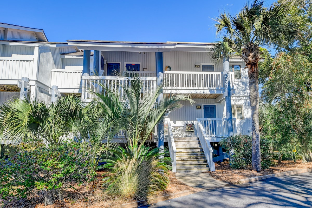 Escape to Seabrook and relax at a private South Carolina coastal island with access to exclusive beaches, pools and amenities. This thoughtfully designed and decorated 1-bedroom, 1-bathroom villa has everything needed to make your island experience comfortable and memorable. The villa is on the end of the upper floor which provides a quiet retreat and its porch overlooks the Racquet Club. Conveniently located within the security gates of the 7-square mile island, the villa is ideal for Seabrook!