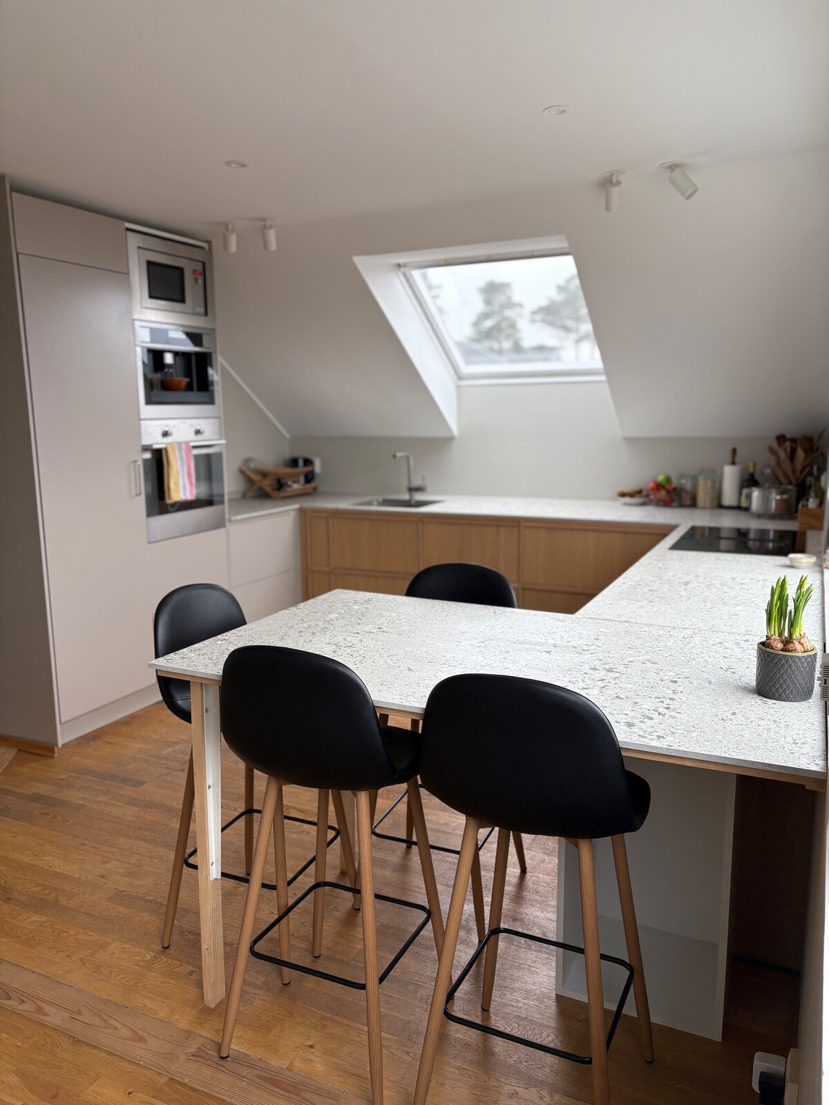 In this spacious and unique villa, the entire travel party will have a comfortable stay :) Take a relaxing bath in the bathtub with your favorite series on TV, fire up the sauna, play table tennis, try the homemade huska that hangs from the living room ceiling, enjoy the sun from morning to late evening on one of the terraces, find garden games, take a quick walk (about 3 min) down to the beach, cook on the spacious kitchen island (or fire up the grill outside!) while you look at the view - here the possibilities are many! Welcome!