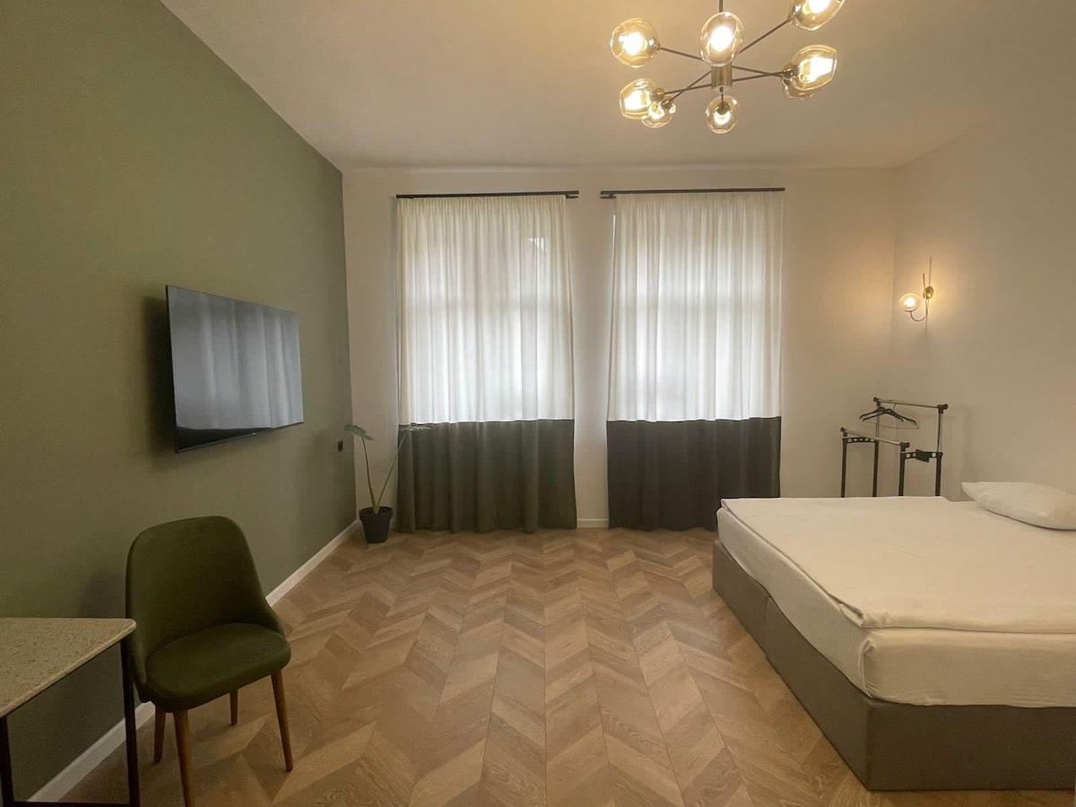 Welcome to Aparthotel Mtatsminda, located in the heart of Tbilisi near Rustaveli Avenue. Set in a historic building, our three newly renovated rooms offer quality mattresses, fresh linens, and kitchenettes for a comfortable stay. Located on the second floor, two rooms share a large balcony. All rooms face Mtatsminda Mountain with beautiful views of St. David’s Church and the Tbilisi TV Tower.