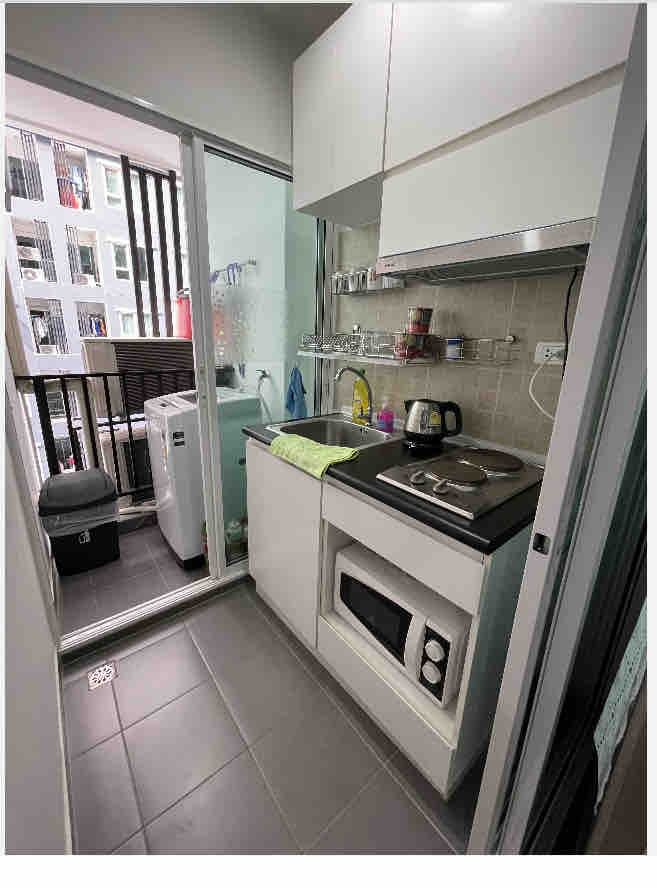 Furnished with a queen-size bed, an efficient kitchenette, and a spa-inspired bathroom, our cozy studio definitely provides you with an ideal atmosphere for your congenial relaxation after a long fun day in the vibrant Bangkok. It is also equipped with Wi-Fi and TV cables. This studio is conveniently located, with a 5-minute walk to MRT Bangson, which is 4-MRT stations away from the famous Chatuchak Market, 30-40 minutes (by train) from Bangkok’s landmark shopping district. (Details below)