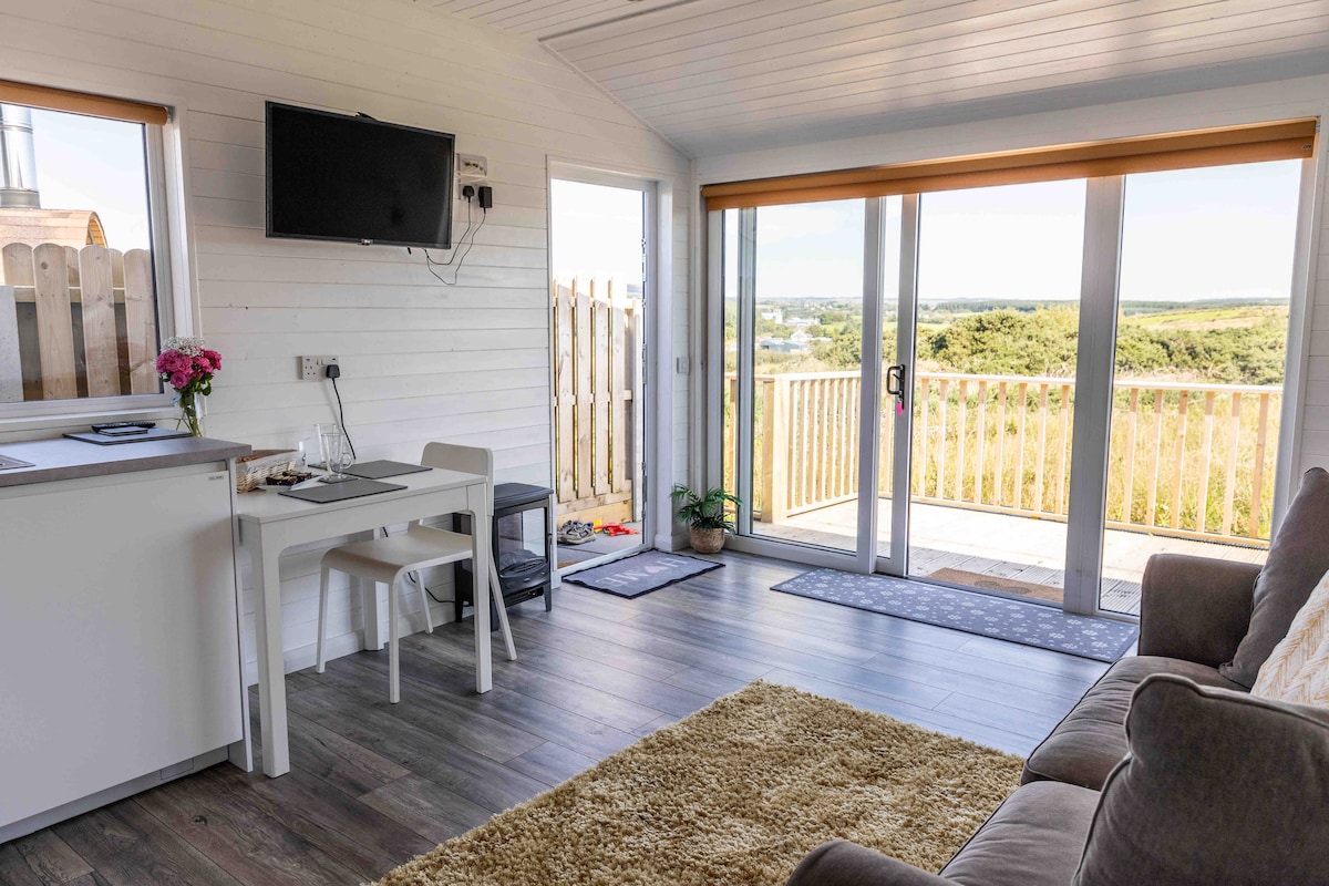 This is a unique space, tastefully decorated, cozy and relaxing, a little haven, on a mature site, surrounded by lovely gardens. It contains a king size bed, sitting area and TV, kitchen and a bathroom/shower. A generous patio, with a table and chairs. It has all modern conveniences, inc fibre broadband, a selection of TV channels, a blue tooth speaker to listen to your music. You also have access to a private swimming pool and sauna.