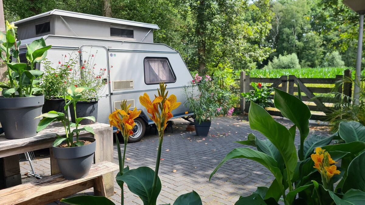 In a quiet spot in Wenum, on the outskirts of Vaassen, is our small, old farm, Boerderij de Flesse. Close to the Crown Estate, 't Loo Palace, the Apenheul, beautiful cycling routes and within walking distance of 2 Klompenpaden. You can stay with us in our caravan in the middle of the meadow. Facilities are available in our clog shed. Our minibieb is on the road, and we also have all kinds of games. Peace, Space and Respect are important to us for our animals and for our guests.