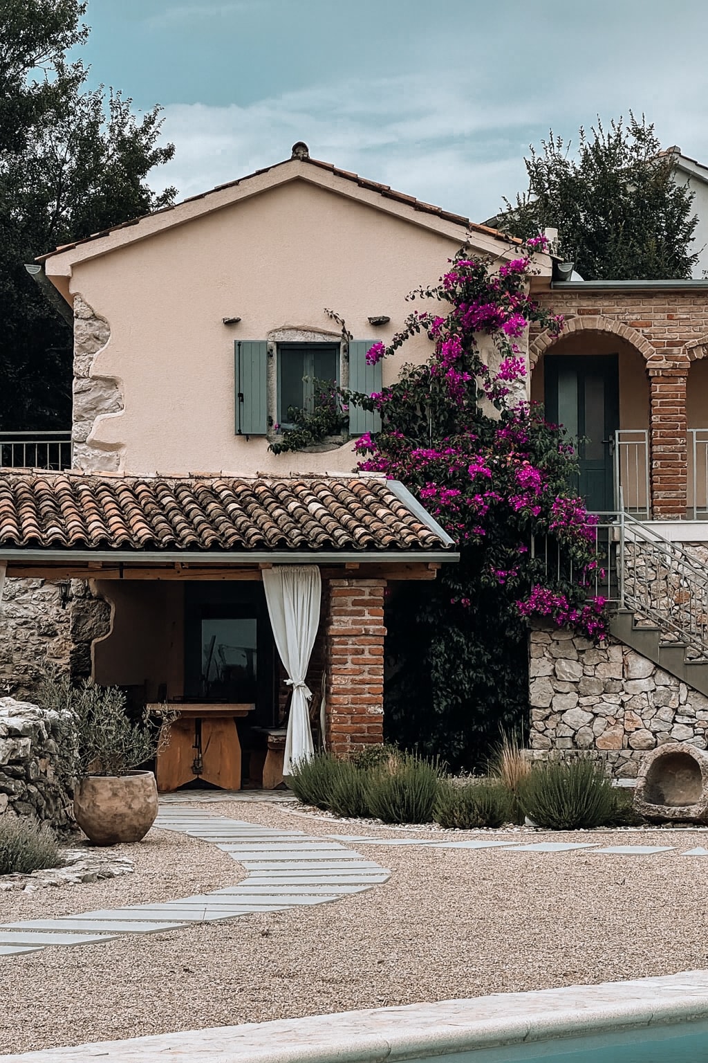 The villa is secluded and, approximately 200 meters from the village, It was built from a indigenous stone house from the beginning of the 19th century, and a new part where large glass surfaces dominate the outside of the house. The old house has a bedroom, and a living room with a kitchen and full bathroom. The surrounding area is 1000 m2. It has eight centuries-old trees that can lead to sunshine. You'll have two seasonal gardens with greenery on hand.
