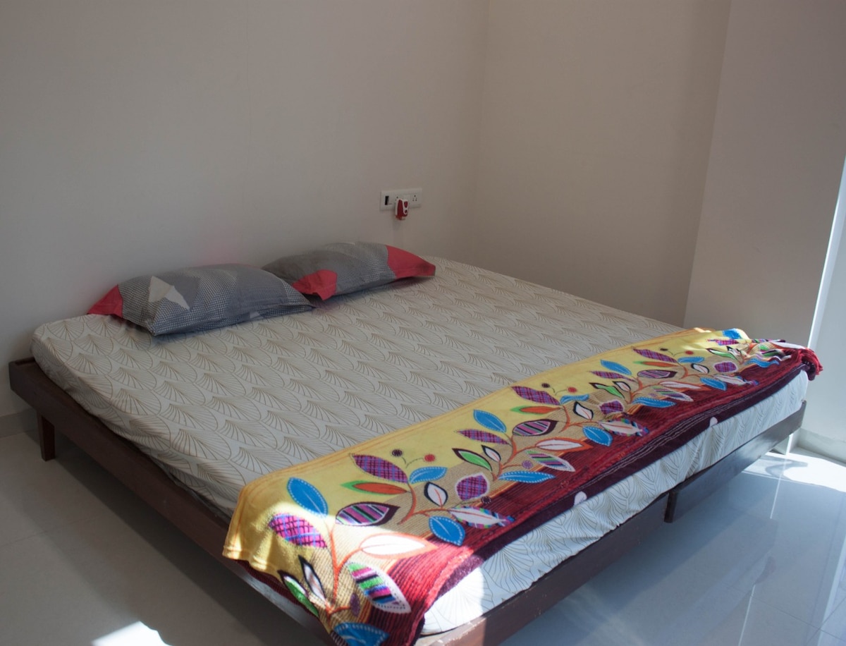 Full bungalow. 2 air-conditioned bedrooms with attached bathroom, kitchen with fridge and microwave. 500meters from kashid beach, 5-10 mins walk. Complete privacy, 50mbps optical fiber WIFI connection, Breakfast included. Parking available. Max 6 members IMPORTANT Kitchen for reheating food only. Fridge use OK Low network coverage area Weekly electricity cut, Tuesdays 10am-6pm, No AC in these times. Main road 300m, shops 1km away, bring all essentials or inform caretaker in advance.
