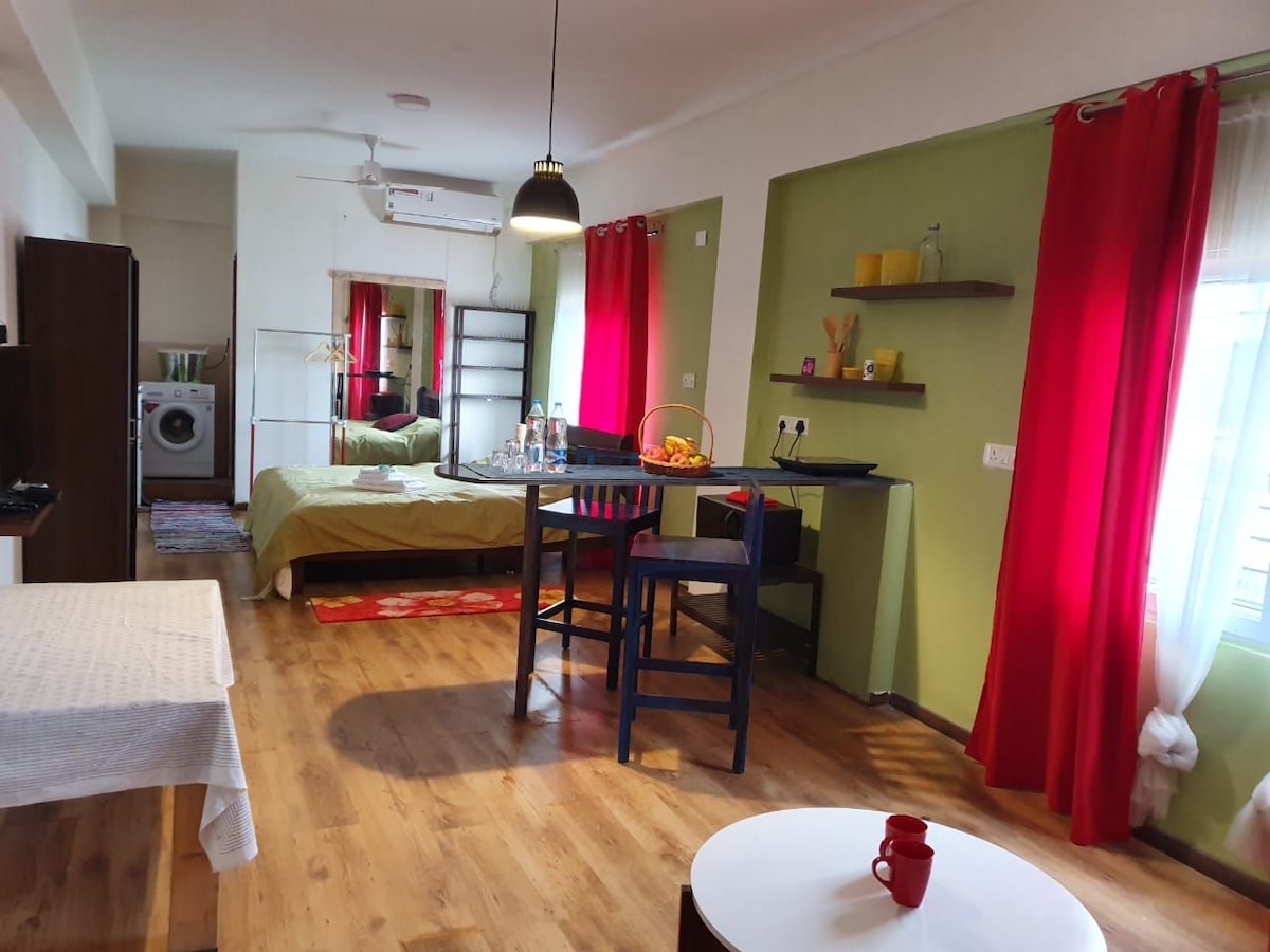 PLEASE NOTE: 2 FRIENDLY PET-DOGS LIVE ON THE PROPERTY. CHECK-IN: 2PM-9PM CHECK-OUT: 12 NOON Work, rest and play in this independent apartment with your two bedrooms, a spacious living room, two bathrooms and a balcony. We have travelled to 30 countries. But more than the amenities, we remember the warmth of friendships and memorable encounters. And that's what my family would like you to take back from Mysuru - stories that are worth sharing. That's why our property is called 'Story Stay'.
