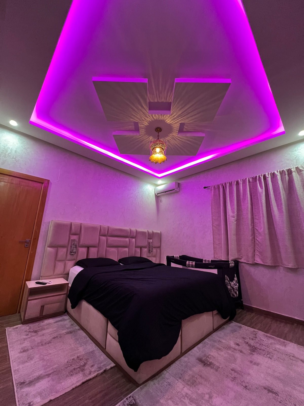 Located in Marrakech just 5 minutes from the centre, this elegant and bright apartment is in a quiet and secure residence with a swimming pool. It has a cosy living room, a large comfortable bedroom with illuminated mural and dressing table, a fully equipped open kitchen, a modern bathroom and a balcony overlooking the pool. đ Ideal location, close to attractions, while offering a peaceful setting âĄïž Perfect for a relaxing stay in Marrakech