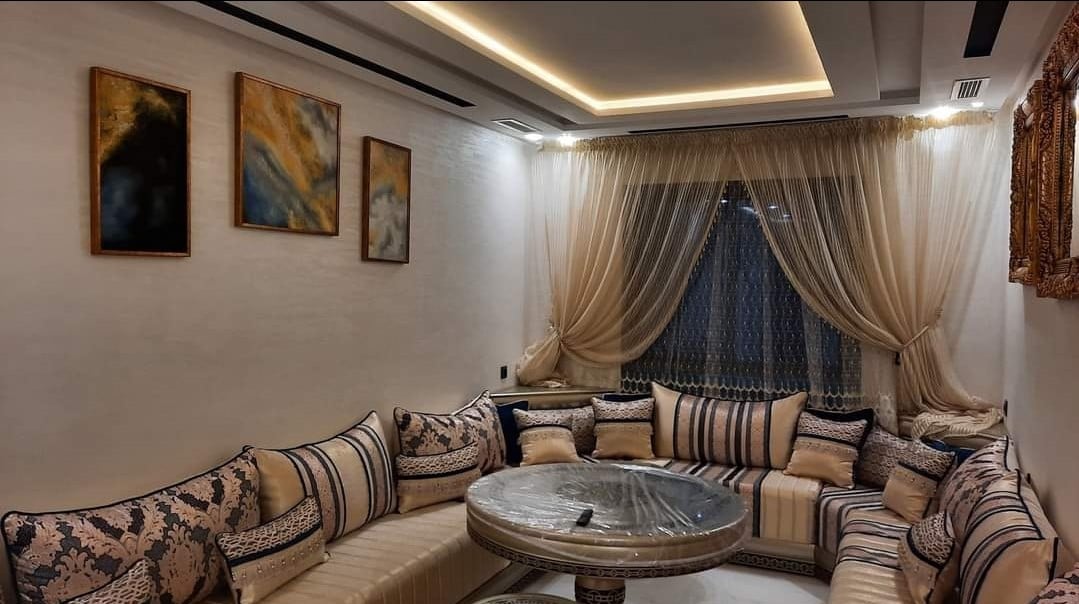 Beautiful luxury duplex apartment, with terrace, 2 bedrooms, 2 living rooms, large kitchen. Best location in Nador Unique in Nador 🥇 170 sqm, 60 sqm living room ✅ Video surveillance ✅ Underground parking surveillance ✅ Security guard ✅ Air conditioning Next to all shops, butcher, fishmonger, large café. Everyone in your family will feel at home in this spacious and unique home. Guide available on-site if needed ✅