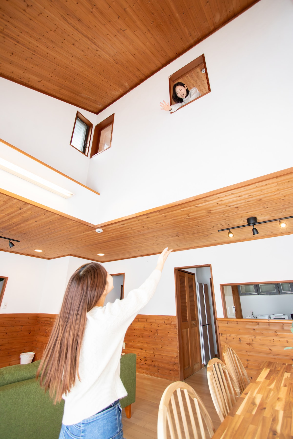 15 minutes by car to Ghibli Park | Maximum 12 people | One train to the dome | Parking for 2 cars + | 150㎡ | Spacious open-plan space with a skylight