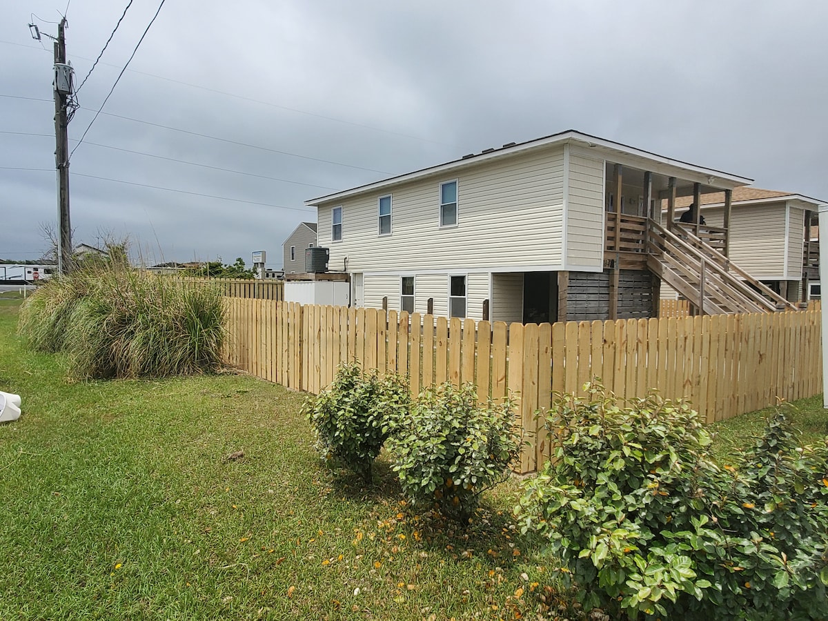 Welcome to Casa de Calypso in Nags Head near MP 14. Epitome of Country at the Beach. Beach is Across the street. Rent one or all three cottages, with large separate yards that are professionally cleaned and sanitized. Open concept, 3BR 2 Full Baths (1 King, 1 Queen, 1 Twin over Full Bunk), large open field, outdoor shower, fire pit, cornhole, board games, wifi multiple smart tv's, near hospital, outlet malls, grocery stores, restaurants and the most secluded beach in town.