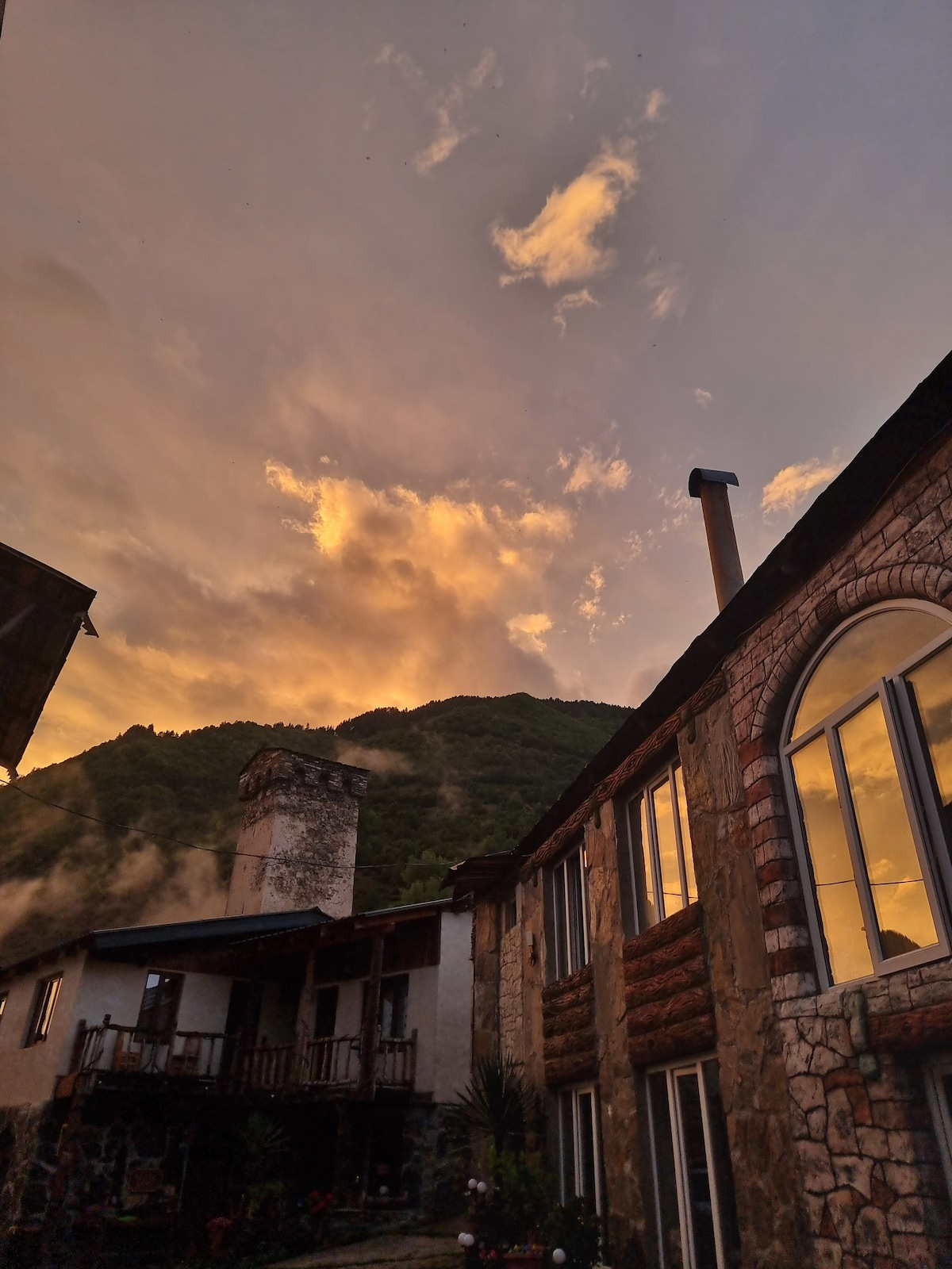 View, view, and view! Enjoy one of the most breathtaking views in all of Hatsvali, Mestia. The place is private and peaceful, yet only 50 meters from the Hatsvali ski lift. Wake up to the sounds of squirrels, maybe spot a fox, and admire the majestic twin peaks of Ushba. The area is regularly treated for insects, but as it’s surrounded by pristine forest, you may occasionally notice a fly or small bug — part of the true mountain experience.
