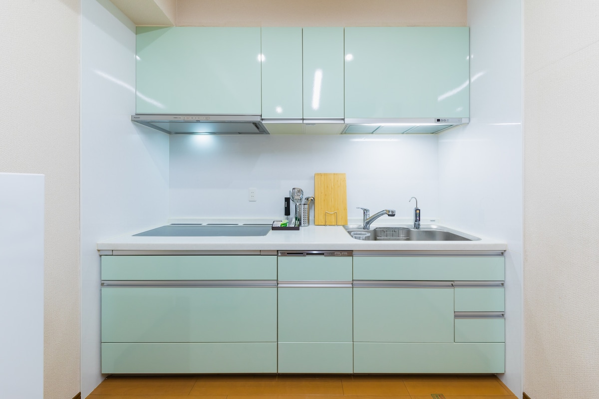 Enjoy a "living-like travel" experience with your loved ones in a 50㎡ small luxury space. We can accommodate couples, friends, and families with small children. It's like a second home abroad, a place to relax and unwind between sightseeing. The popular bathroom is equipped with a bathtub where you can stretch your legs, a mist sauna, and a TV. Relax your mind and body from the fatigue of your travels. The washstand has 3 types of mirrors, and it is comfortable to get ready every morning. A sofa bed is available for use by 2 or more people. We also have a baby chair for children. Enjoy your Netflix, Amazon Prime, and other accounts with a large screen projector. Equipped with high-speed wifi, kitchen, washer and dryer, air purifier, baby chair, steam iron, toothbrushes, and welcome coffee. Dotonbori and Shinsaibashi are within walking distance, and access to Kyoto, Nara, and Kobe is also good. [Note] Because it is a private lodging in the Osaka Special Zone, you must submit information and passport images of all guests in advance. [Access] 6-minute walk from Osaka Metro Matsuyamachi Station/About 60 minutes from Kansai Airport.
