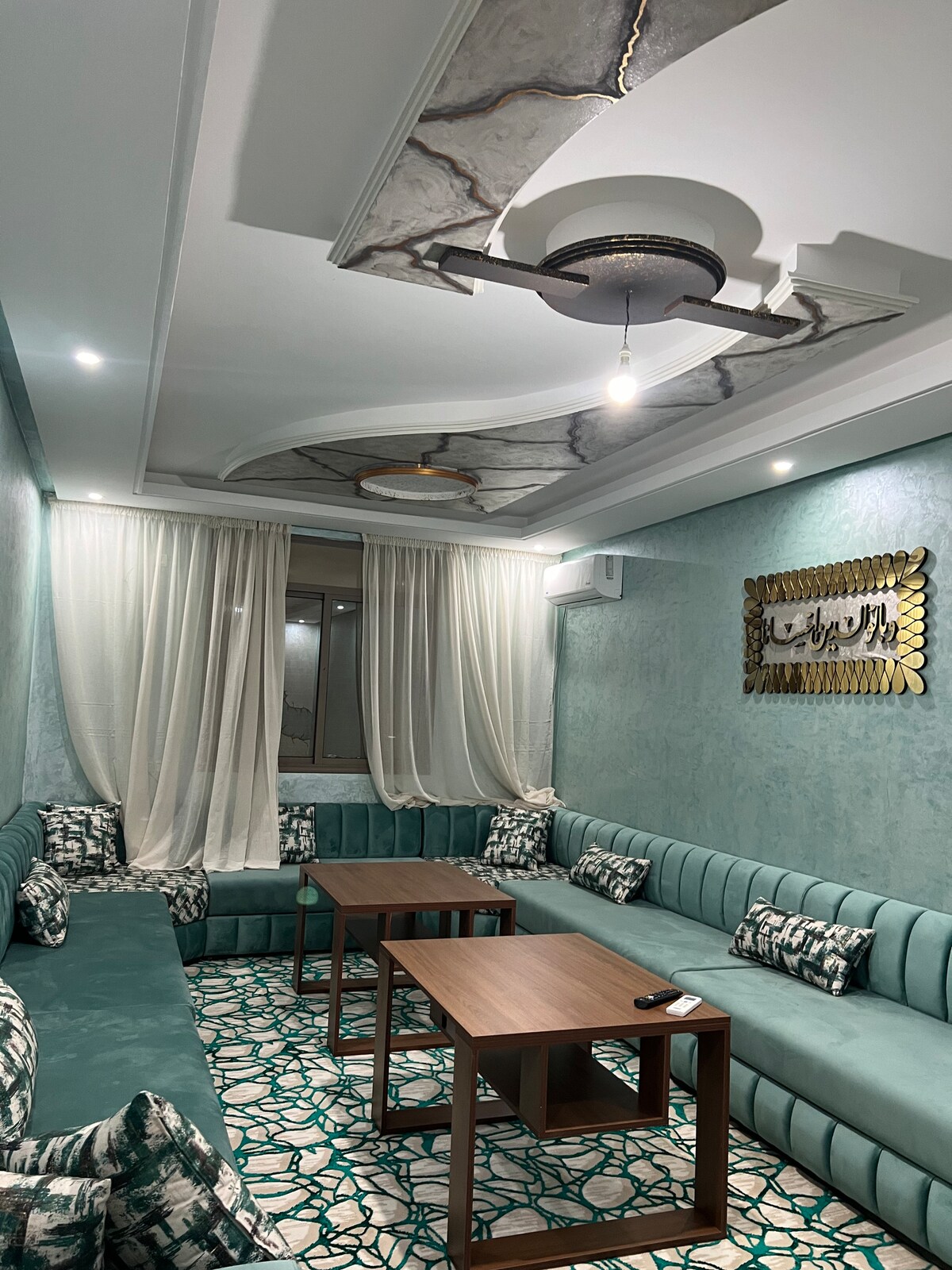 Modern and quiet apartment in Beni Mellal, ideal for families or groups. It includes a large Moroccan living room, a small American living room, 2 bedrooms (sleeps 4), a fully equipped kitchen, a shower and 3 large balconies. Enjoy fiber Wi-Fi, air conditioning, washing machine, smart TV with Netflix and new appliances. Located in a peaceful area, close to shops. - providing me with an ID card is very important. - no alcohol in the accommodation.