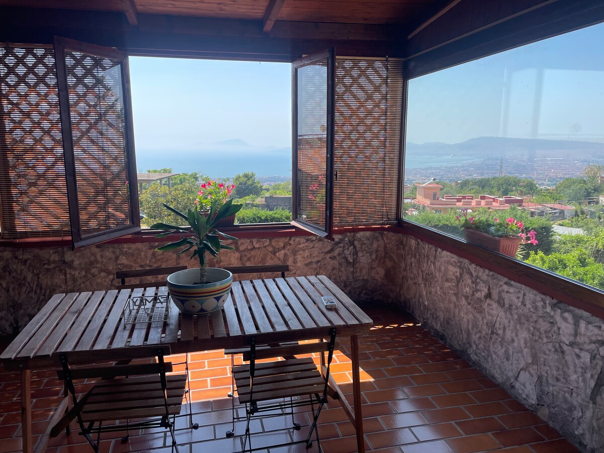 It is an apartment located in the attic of a villa. It offers an excellent location to visit various places of archaeological interest (Pompeii, Herculaneum, etc.) and landscape (Amalfi/Sorrento Coast, Capri, Ischia, Procida). The apartment can accommodate up to 6 guests with 2 bedrooms. One bedroom with a double bed and the other with a double bed and a bunk bed, both rooms have a bathroom inside. Accommodation tax of €1 per person per day.