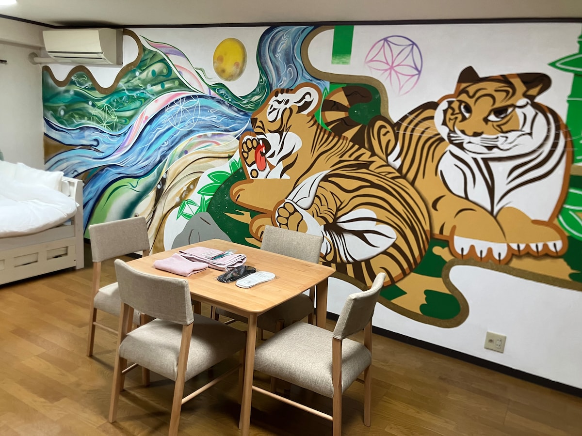4 minutes on foot from Osaka Midoribashi Station, spacious private room with high-speed Wi-Fi. Why not stay in a room with a picture of a tiger?