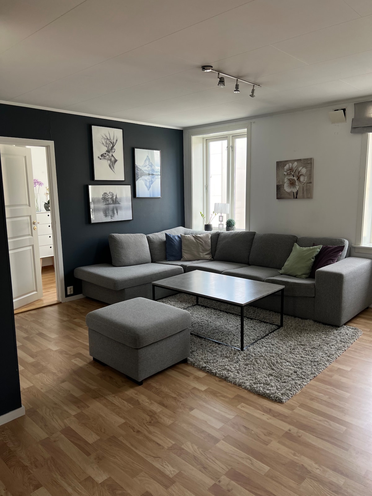 Large apartment (about 100 sqm) located in scenic surroundings 5 minutes outside Narvik. The apartment is spacious, has 2 bedrooms, one large bathroom and one large kitchen. The apartment has a veranda with a beautiful view towards Ofotfjorden and out towards Hålogalandsbruen and Narvik. Outside you will find a garden, a common jetty and a nice outdoor area all the way down to the sea. Possibility to wash and dry clothes. Wifi in the apartment with a limited number of GB, desirable that you do not stream.