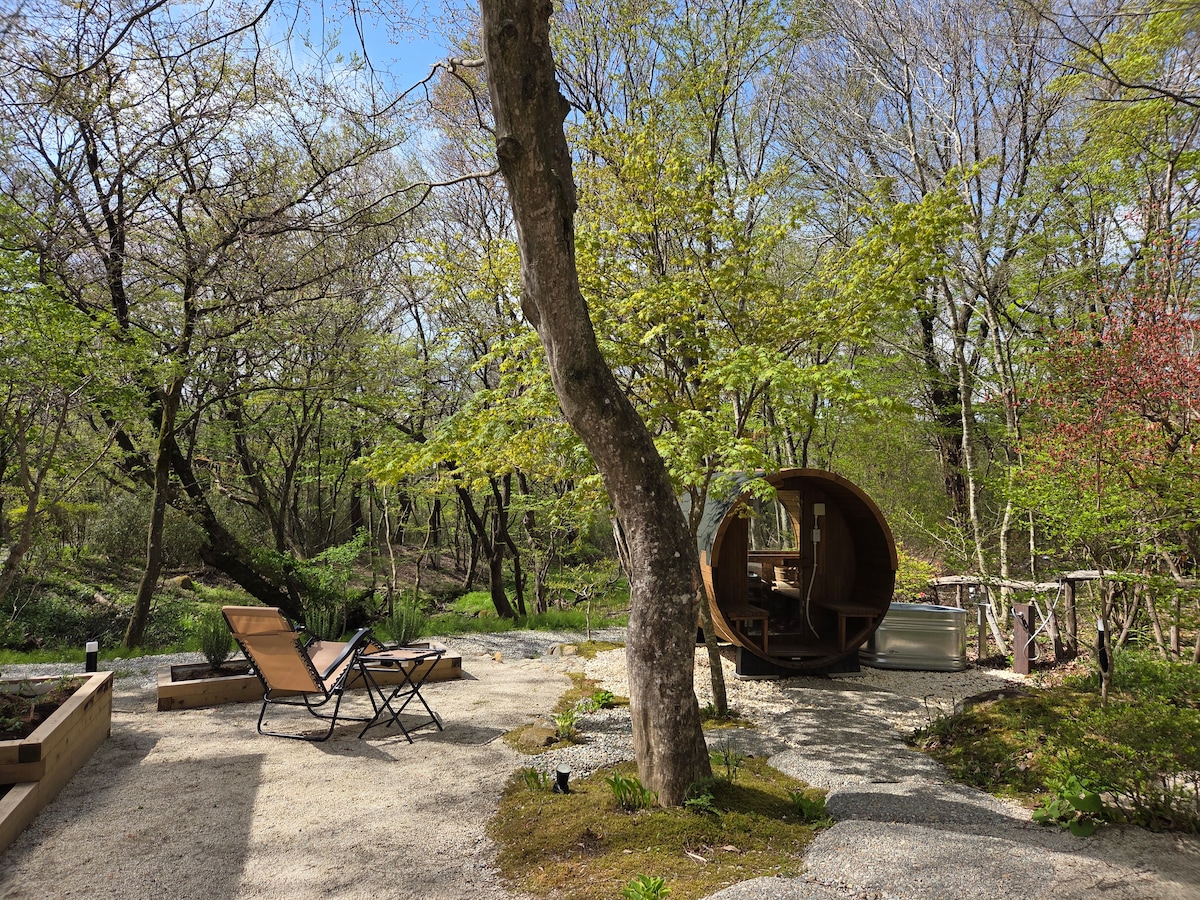 Wood-fired barrel sauna, hot tub, BBQ grill, wood-burning stove, free parking for 4 cars, 3 minutes to Nasu Hi-Land
