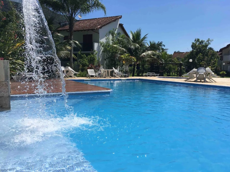 Comfortable house with new and modern furniture in one of the best gated communities in the region (Jequitibá condominium) The location has a lot of greenery, is very well maintained, safe and quiet, ideal for you to gather family/friends or rest The condominium has an adult and children's pool, playground, soccer field, game room, gym, 2 indoor parking spaces and barbecue (must be scheduled) The house is 300 meters from Maranduba beach (8-minute walk), has air-conditioning, fast Internet and beach chairs.