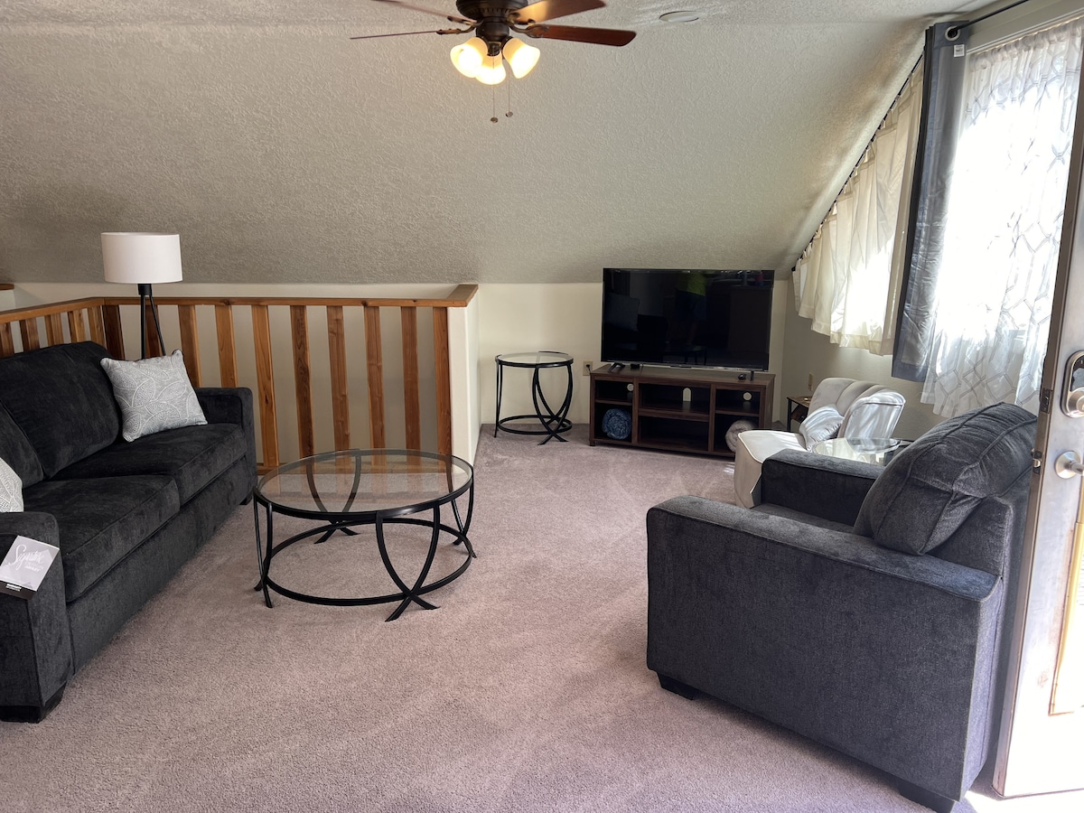 The whole group will enjoy easy access to everything from this centrally located renovated office space. With two bedrooms plus a daybed/trundle everyone will get a good night sleep. The living room is spacious with a 55" smart tv and high speed internet. The kitchen may be a bit on the small side but is stocked with all the amenities you could ask for. Bathroom stocked with toiletries. Located 15 minutes from the local hospital and 20 minutes to San Juan Quality Waters. Park up to 4 vehicles