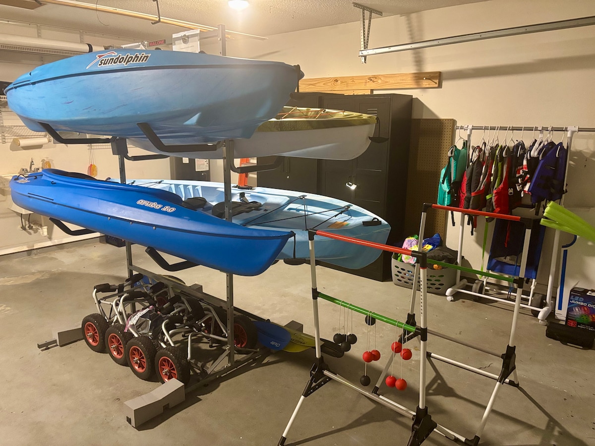 *No Pets or children under 10* No Parties $500 fine Bayou Grande Casita is a block from the water with chef's kitchen, lush beds and sofa, & game room w/ ping pong & darts. Take the kayaks to the bayou for a nice paddle where dolphins play. Screened porch for coffee, drinks or a meal outside. Miles of walking paths along the water where we watch the Blue Angels practice. Navy Point has great fishing, a boat ramp, 20 min to beaches, & 10 min to downtown. See our guidebook for local spots.