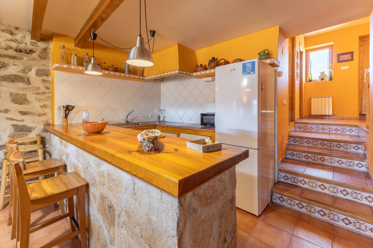 The house is charming, adapted to the natural environment, it was restored maintaining the original materials, stone, bricks and handmade clay tiles, chestnut wood... The electricity comes from solar panels and a generator It has 4 bedrooms, 2 full bathrooms, 1 kitchen and dining room. A glazed porch with a sofa and table, it also has a porch and outdoor table with a large garden. Fireplace and heating. (Firewood for a fee €20) Private parking. Away from the noise. Massage for a fee.
