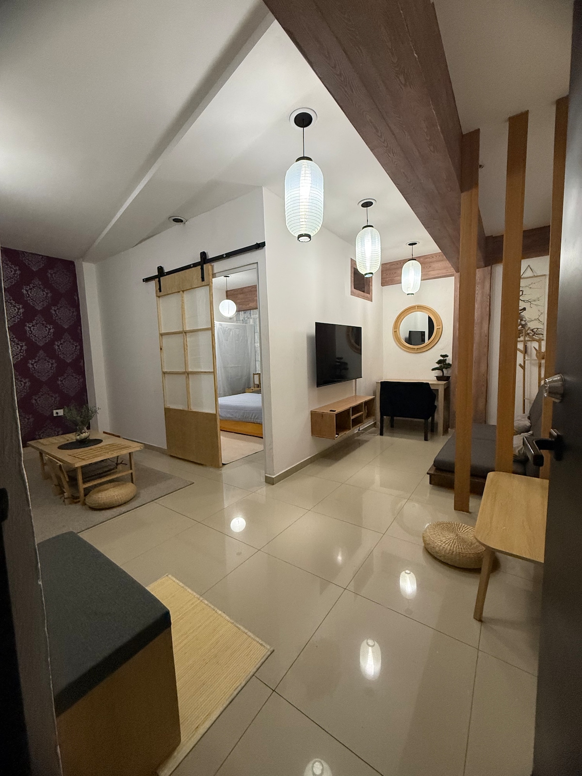 Sakai 44 , creado para quienes aman, la cultura japonesa , el anime y los espacios con vibra auténtica. Esta diseñado para que te sientas en un pequeño departamento japonés en medio de la ciudad. Al entrar, el espacio te invita a hacer lo más japonés de todo: dejar los zapatos en la entrada, La recámara es cómoda y acogedora, pensada para dormir profundo, cuenta con Smart TV para ver tus animes y series favoritos