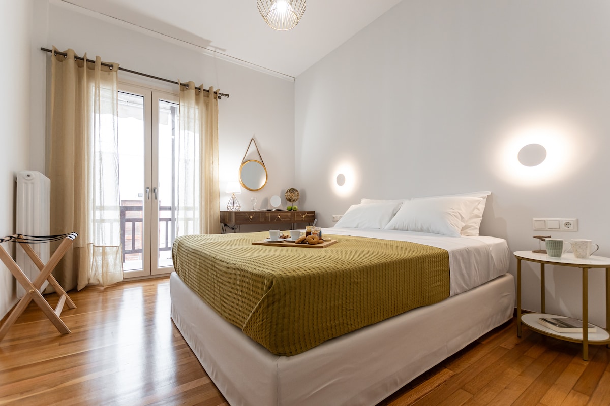 A unique aesthetic apartment with a beautiful private patio and lots of art touches, located in a picturesque neighbourhood in the heart of Naxos Town that can host up to 5 guests. Located 10' on foot from the Port, 1'-2' from the Market and other places of interest (castle, museums, etc) and entertainment (bars, restaurants, etc). If you travel without a car, no worries; the closest bus station to the most popular beaches and villages is at 3' on foot. Free parking space at 3' on foot!