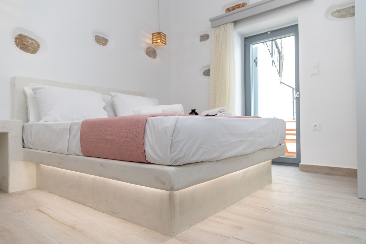 Lofos is a renovated apartment designed with care and love for our guests. Located in the heart of Naxos town, in the most central square, 250m from Saint George Beach and really close to every single Naxian hotspot such as restaurants, bars, supermarkets, pharmacies, bakeries, car/moto/bike rentals, coffee shop, fashion shops and more, plus it is only 700m from the port of Naxos, where also the bus stop is.