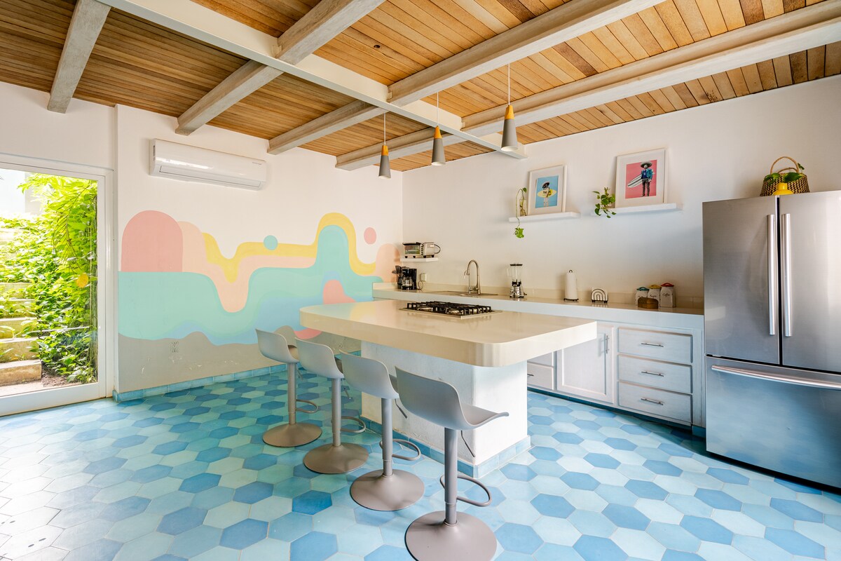 It's an almost new Apartment located in a small complex with two other houses and a shared lonely pool. Nested in a quiet residential zone with easy access by golf cart or foot; very close to restaurants and 500 meters from the beach on the north side. Fiber Optics WiFi with up to 400 Mbps download speeds. * Subject to Availability (due to weddings and events): Includes free daily access to a beach club in Sayulita: AzulPitaya.