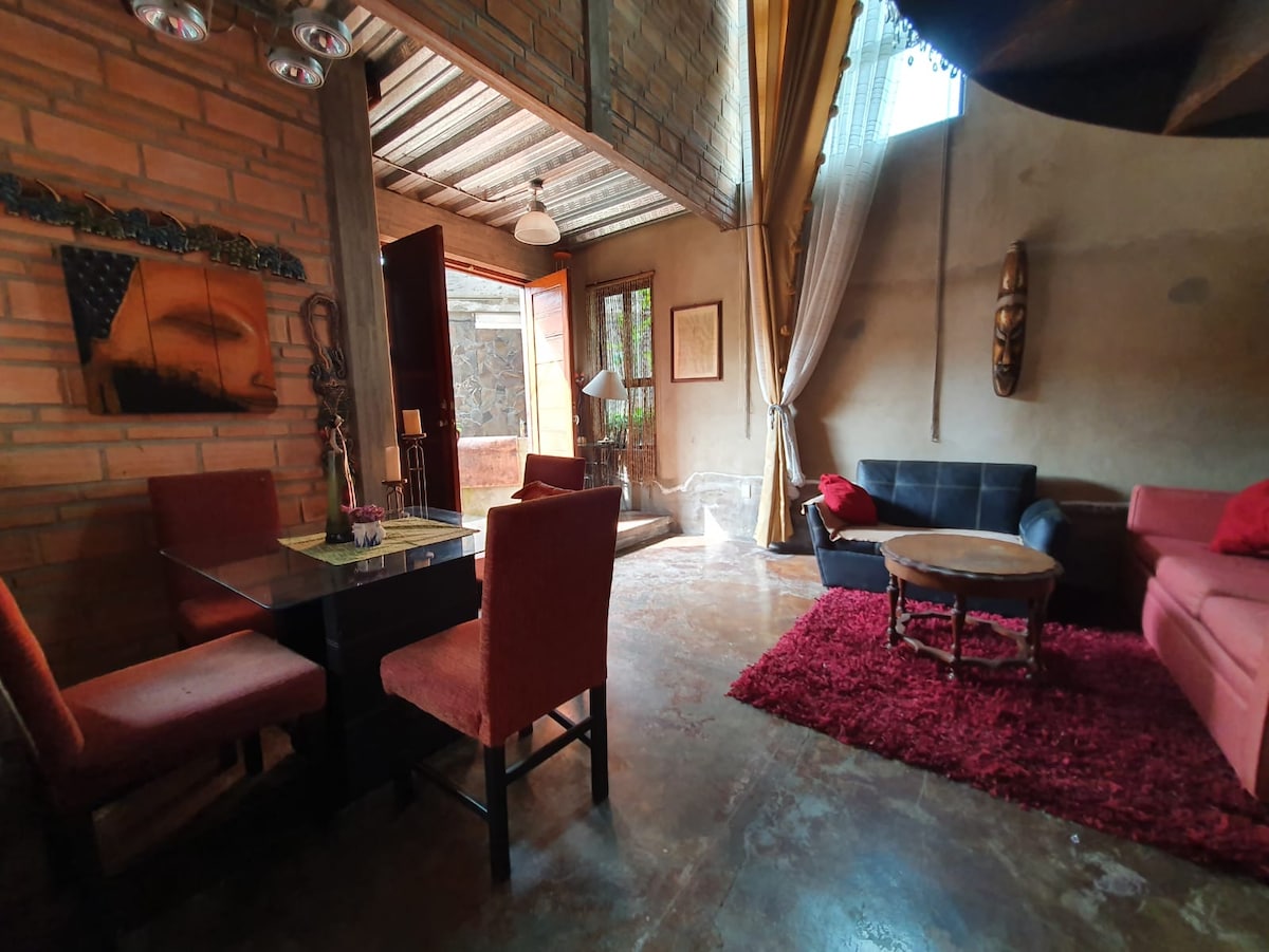 Stay in a different house, unique design, with high heights spaces. Being a townhouse, the outside patio is shared with another house. Your car will be protected by high walls and a solid gate. It is a three-story house, where the bedrooms and bathrooms with showers are on the 2nd and 3rd floors. On the 1st floor, there is a sofa bed in the living room that can be used for sleeping, and a half bathroom; in addition to the kitchen and dining room. Great for families but with stairs everywhere.