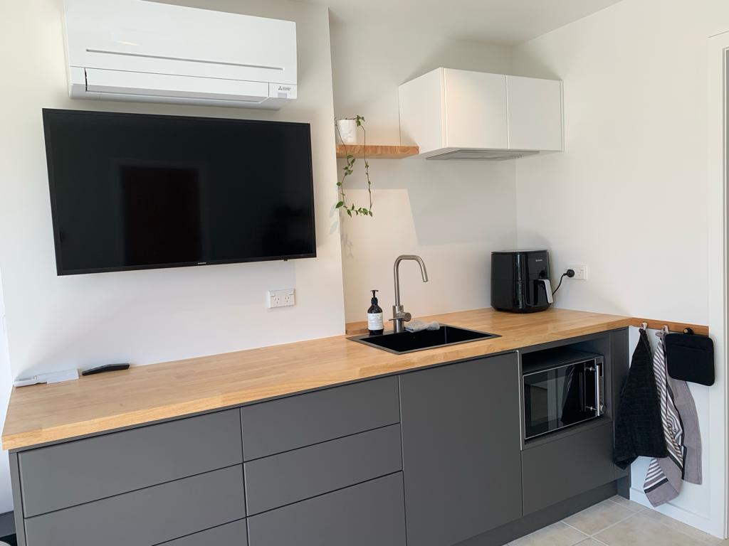 Enjoy this crisp, clean studio, recently renovated and beautifully decorated. From both the interior and the private outdoor area, you can look out over Tasman Bay toward the golden sands of Abel Tasman National Park. It’s the perfect base to explore three National Parks, enjoy local wine tastings, or simply kick back in this calm, stylish space. Located in a lush, quiet neighborhood, a short 15-minute walk up the nearby hill rewards you with breathtaking panoramic views of the bay.