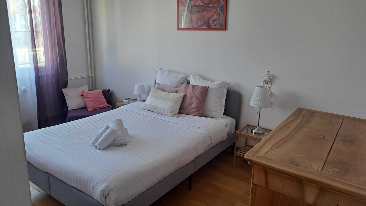 Apartment close to the city center (Cathedral and Petite France 25 min walk or 11 min by bus). Quiet and warm, it is suitable for couples and families. The area has all amenities within a 5-minute walk (bank, supermarkets, bakery, pharmacy, restaurants, bars, tea rooms, doctor, dentist, theater). The accommodation is well served by bus station (1 min away) and tram (6-8 min). Internet, netflix, apple TV.