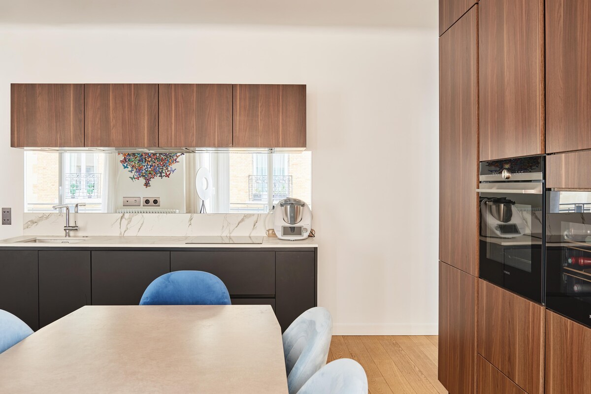 Architecturally refurbished accommodation, located on the main avenue of Neuilly sur Seine, the 2nd richest city in France, bordering Paris. With stunning views from the balcony, with the Arc de la Défense on the right and the Arc de Triomphe on the left, opening onto the Champs-Elysées. 100 m from metro 1, between the 1st business district in Europe (La Défense with its 71 towers) and Les Champs-Élysées, 4 stations, 20 minutes from the Eiffel Tower and 9 stations from the Louvre Museum.