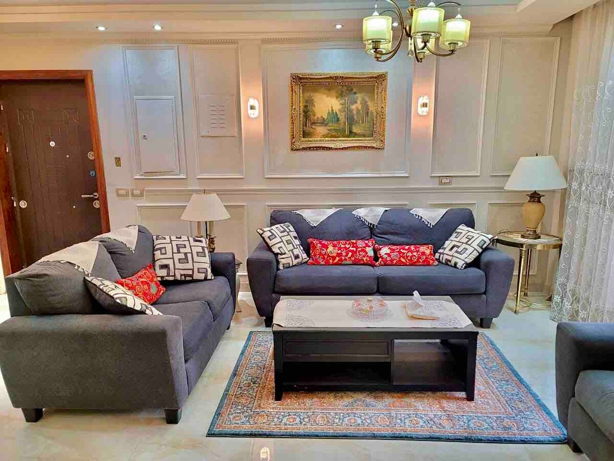 Enjoy staying in the beautifully decorated, spacious & luxurious 240m apartment in the safest area in Egypt 🏡 The apartment is located in a strategic yet very quiet area in New Cairo. Location 📍 > 25 min from Cairo Airport & downtown > 10 min from Cairo Festival City Mall & hospitals > 7 min from the Egyptian International Exhibition Center, Al Manara Conference center & 5A Waterway mall > Only 5 min walking to pharmacy, supermarkets, restaurants & coffeeshops!