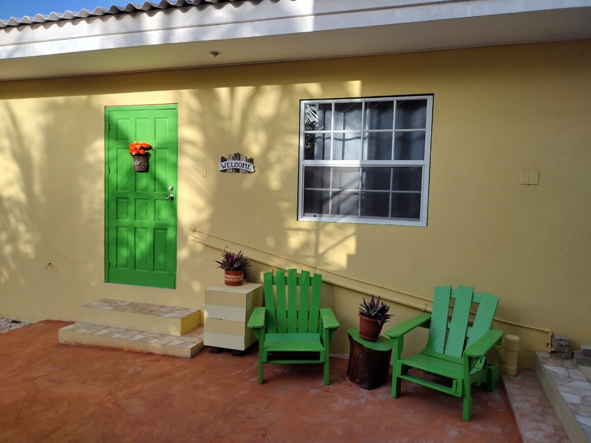 A cozy one-bedroom apartment for 2 people, perfect for couples seeking a peaceful private retreat or anyone working remotely Located on the second floor, it features a kitchen and living area. You can also relax on the outdoor patio at the front with an impeccable view Water and electricity are included in the price. We offer private parking on gated premises and is located just 5 minutes from Mambo Beach. It’s the perfect base to explore Curaçao while enjoying the comfort of your own home