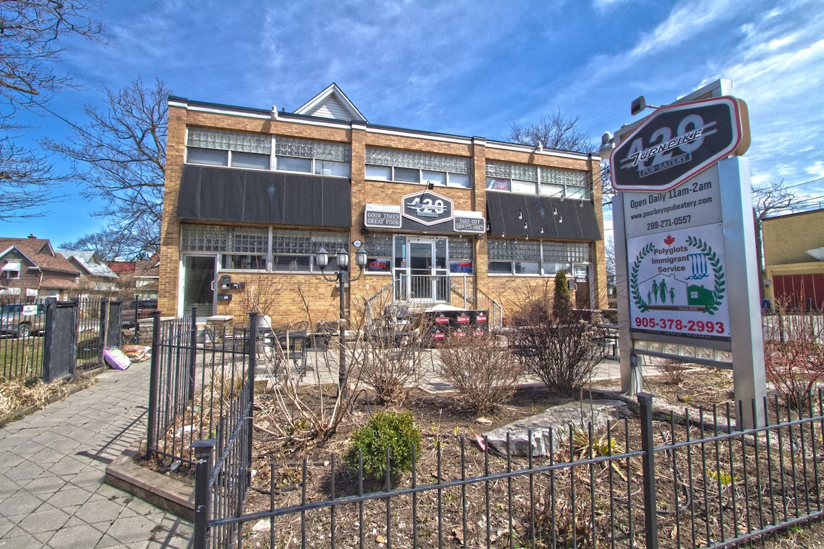 Experience comfort in this beautifully renovated downtown loft in St. Catharines. Enjoy a stylish stay with all the essentials you need. Relax on your private patio with a morning coffee or an evening drink. Just steps away from the bus terminal, restaurants, bars, and LCBO. While exploring the urban area, you may encounter a mix of urban life, including the homeless, who are generally friendly. Perfect for couples, small families, or solo traveler, perfect for up to 2 adults.