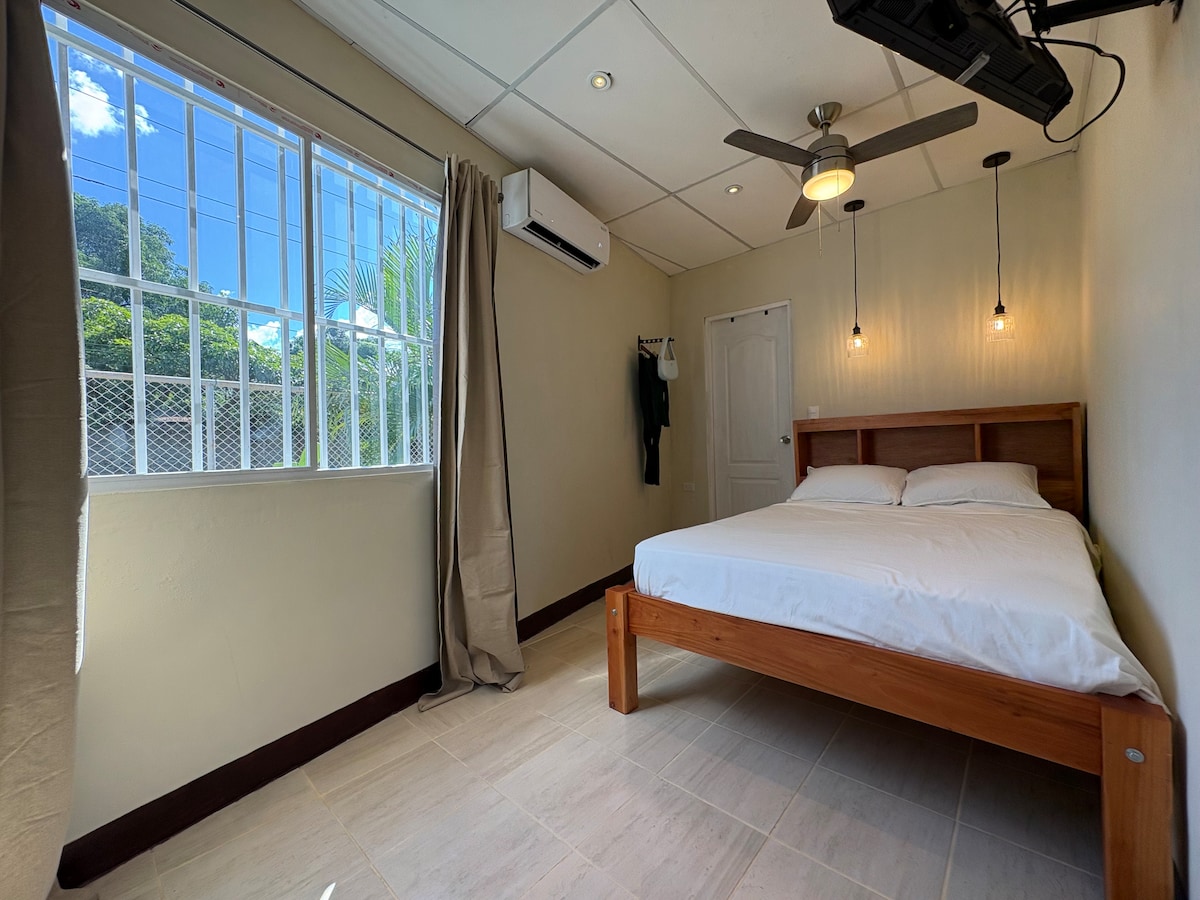 This newly remodeled studio offers a cozy stay for up to 2 people. It is located at the new La Joya commercial area in the middle of the eco casita phase 1 development within Hacienda Iguana. The unit is equipped with a small kitchen and office area. There is an air conditioning unit and fan in the living room and bedroom areas. We have a 55'' smart tv, and our WiFi is reliable. - 4 seater golf cart rental is available @ $50/day.
