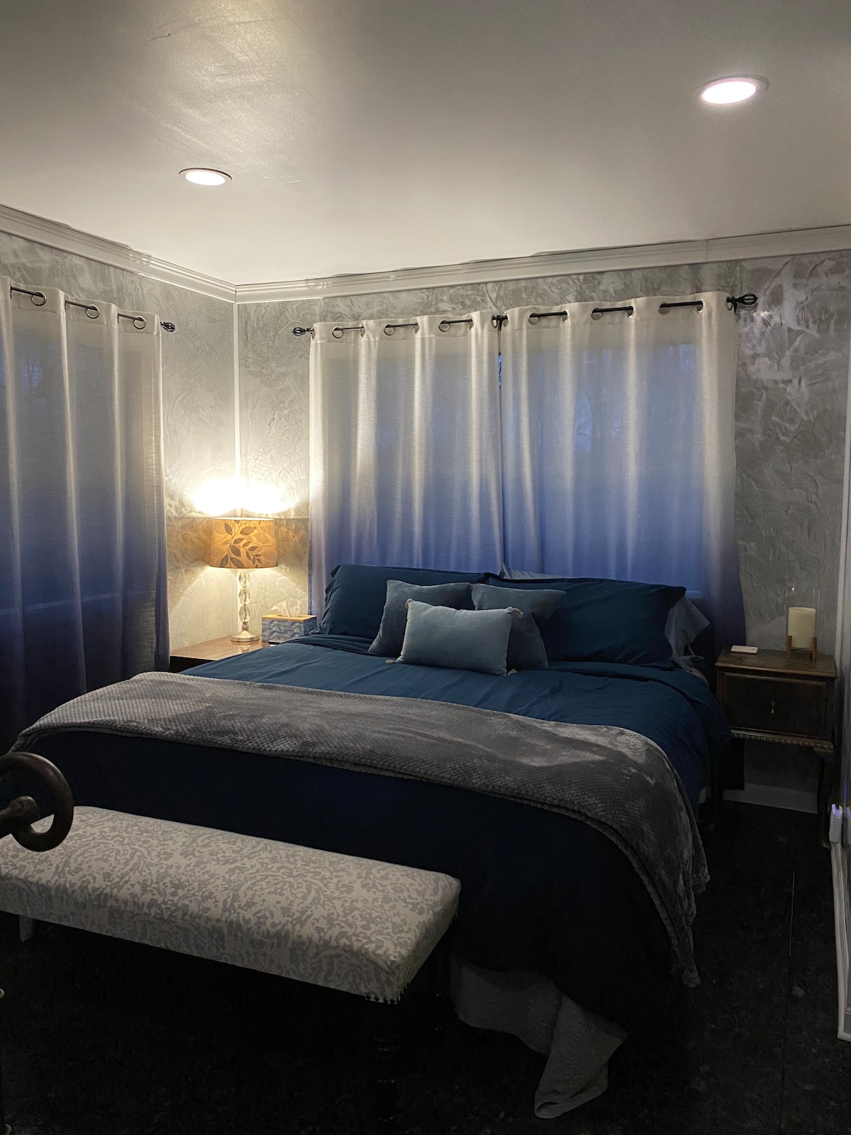 Unique private entrance guest suite with game room, large bedroom & bathroom. The California King bed is a guest favorite, complimented as most comfortable bed ever! Features Jacuzzi, fireplace, Venetian walls, Tuscan tile large shower w/bench, desk work space, & exceptional internet. On 5 acres in peaceful wooded area of Signal mtn yet still only 20-25 minutes from downtown w/ romantic mtn views just a few miles away.