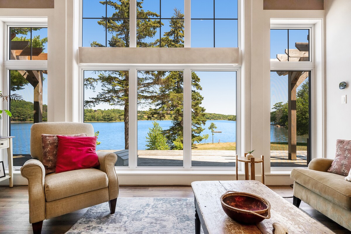 Waterfront Cottage: Huge deck, sun sets, Private Hot Tub: 6 Person tub for 2. Panoramic Water Views: Modern Cabin: privacy and a peaceful environment. Large Deck: outdoor living space both you can take in the sun or retreat into the share. Nature Retreat with wildlife Romantic Escape: for couples, Heated floors, Shower tower, queen master, an extra guest could sleep on the couch. Super private chefs kitchen. Well equipped for all seasons.