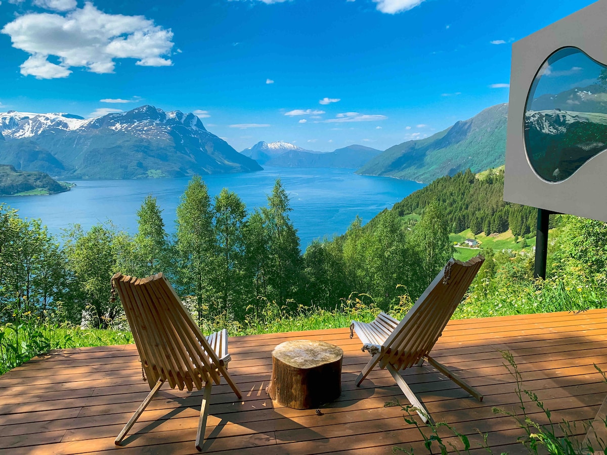Birdbox Lotsbergskaara is located 270 meters above sea level in a beautiful pearl - Nordfjord. Here you get a unique experience framed in one of Norway's finest views, where you can simultaneously enjoy the feeling of luxury and tranquility. While enjoying the relaxing and comfortable Birdbox, you sleep right next to deer grazing and eagles hovering right outside the window. In addition, there are plenty of unique tourist and food experiences nearby. TIP - Are your dates already booked? Check out Birdbox Hjellaakeren!
