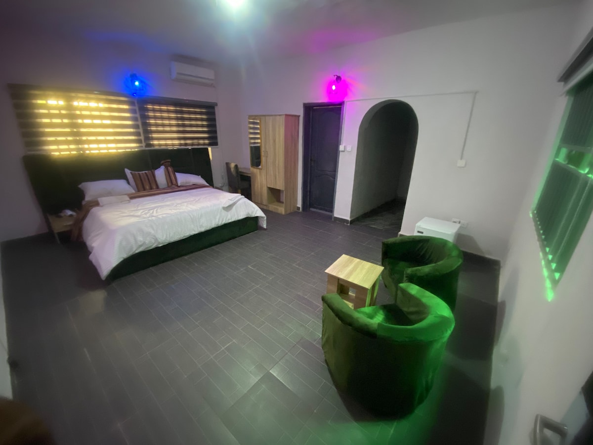 A very sensational one bedroom apartment located inside one of best estates here in the city of ilorin, evergreen estate. Features; 1. Free unlimited internet 2. Dstv premium subscription 3. Air conditioning (only nepa) 4. 24/7 power supply 5. Fully equipped kitchen. 6. Netflix 7. Amazon prime 8. Ample parking space 9. Serene environment 10, Home keeping services Added services: free laundry service and complimentary breakfast. Location: Evergreen Estate off Taoheed Road.