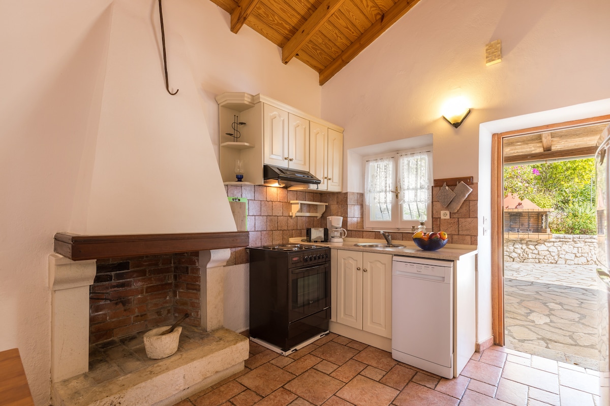 Our Villa Estia (92m2) is placed directly in wonderful Paleokastrista. The Sea view on Platakia bay and the port Alipa make this house a special place to be. Two bathroom, two bed room, a modern open fully equiped kitchen and a combined living and dining room with fireplace - all new made in 2018 - guarantee the best comfort for your stay. The house is for 4 - 6 persons, The sofa bed can be used for another 2 persons.