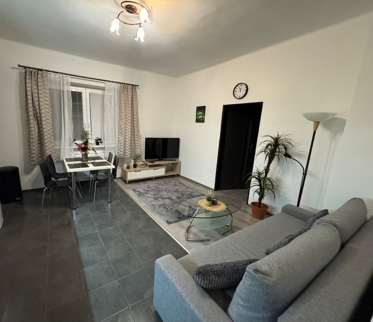 Moderný 2 izbový apartmán v centre mesta s bezplatným parkovaním v podzemnej garáži. Plne vybavená kuchyňa, vhodný aj na dlhodobý pobyt.