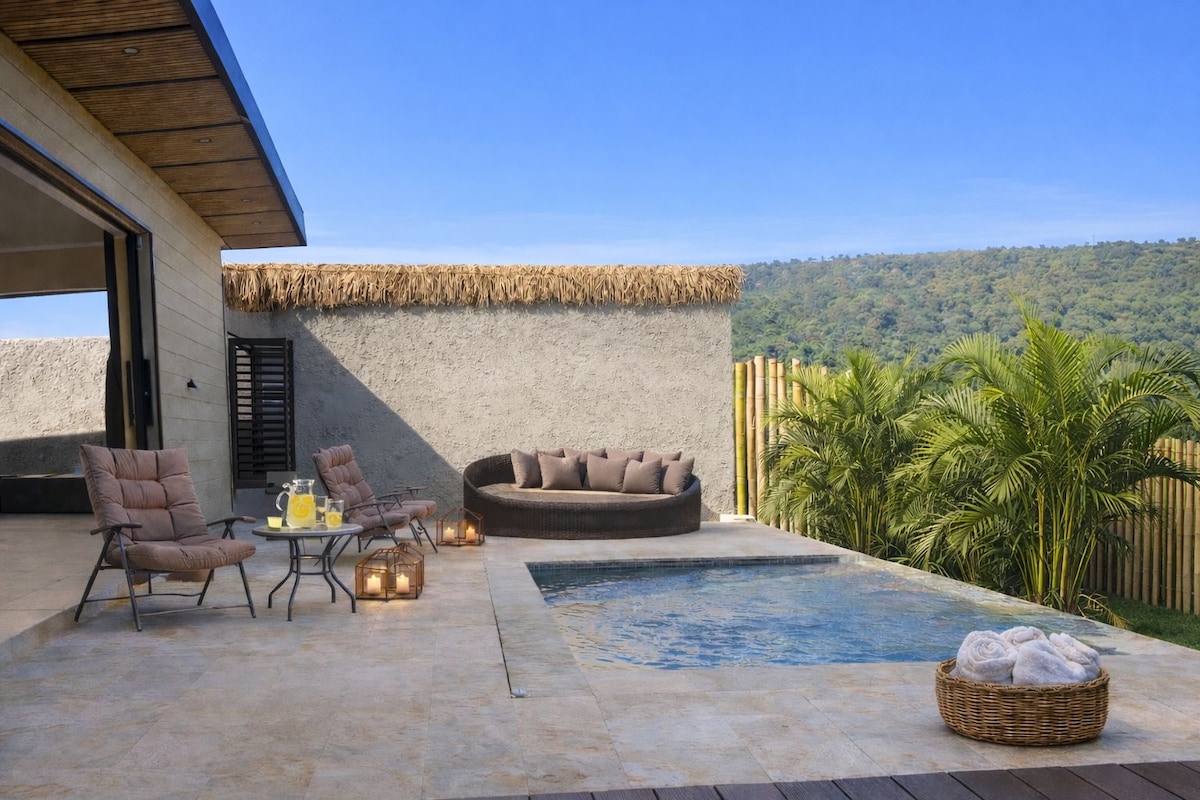 Enjoy a unique experience in our luxury house, located in the middle of the mountains with a spectacular view. The space has a Jacuzzi with a heater, perfect for relaxing at any time of the day while contemplating the landscape. The infinity pool merges with the horizon, creating a feeling of freedom and connection with nature. The design is intended for comfort and privacy, ideal for romantic getaways or for those seeking an exclusive break.