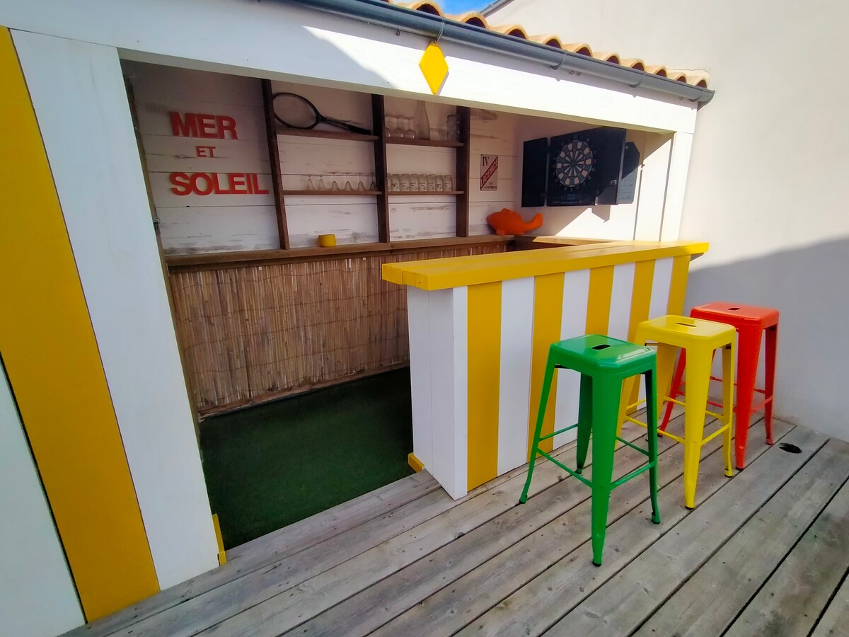 Put down your bags, put on your flip-flops: welcome to Noirmoutier. Here, we live to the rhythm of the sun and the tides. The house? Bright, cozy, ready for 5-6 people. In the morning, we walk to the market (5 min), in the afternoon, we cycle to the beaches (7 min). Beautiful Noirmoutrine Escape :) Two bedrooms, a kitchen for good meals, a terrace to chill in the sun... A bicycle room awaits you, and the rental is available right next door! The rest? It's pure happiness to savor.