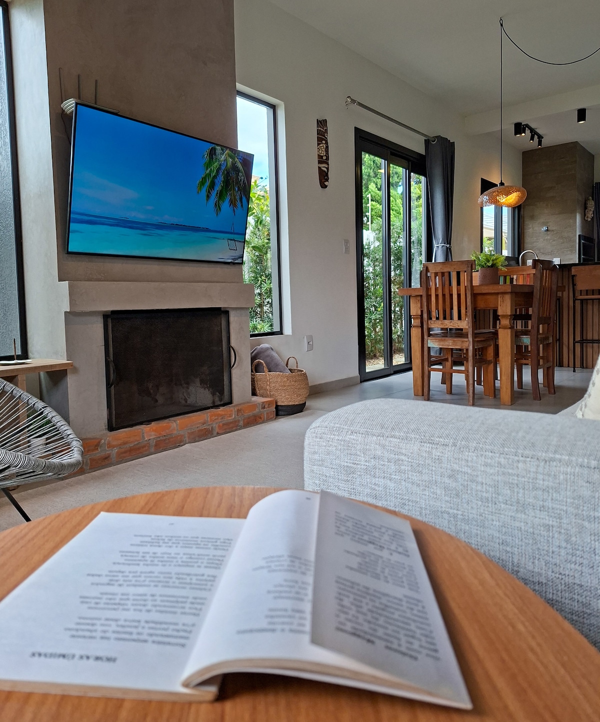 Beautiful house for couples and families in Cond. Las Palmas, Noiva-do-Mar, located in front of the main pool, large equipped kitchen, fireplace, 2 home office spaces, 750mb Wi-Fi, Claro-Net HD TV, 3 queen-bed en-suites and 1 en-suite with bunk bed and two single beds, all en-suites with air-conditioning, barbecue, private pool (4.0 x 2.0 x 1.2), pet friendly. Infra: Thermal pool, 3 tennis courts, 1 of which is covered with clay, beach tennis, padel, grass soccer, game room and lakes.