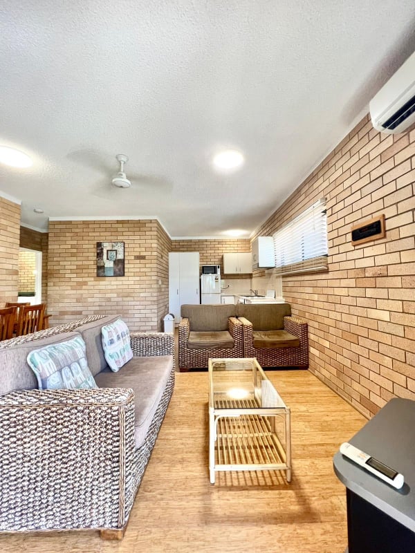 Cosy bright 2 bedroom townhouse. Excellent position & 5 minute walk to beautiful Noosa river & conveniences. Comfortable with full kitchen, lounge room and second toilet/powder room. Private decking with pergola & under cover dining. Upstairs main bedroom & balcony & shower & toilet. Second bedroom has double bed. Allocated carport (1 vehicle only). Key safe lock box self check in. AIRCON in main bedroom ONLY. Ceiling fans in main, 2nd bedroom & lounge area.